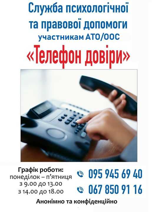 Зокрема, при Центрі діє служба психологічної та правової допомоги «Телефон довіри» для ветеранів АТО/ООС та членів їх сімей.