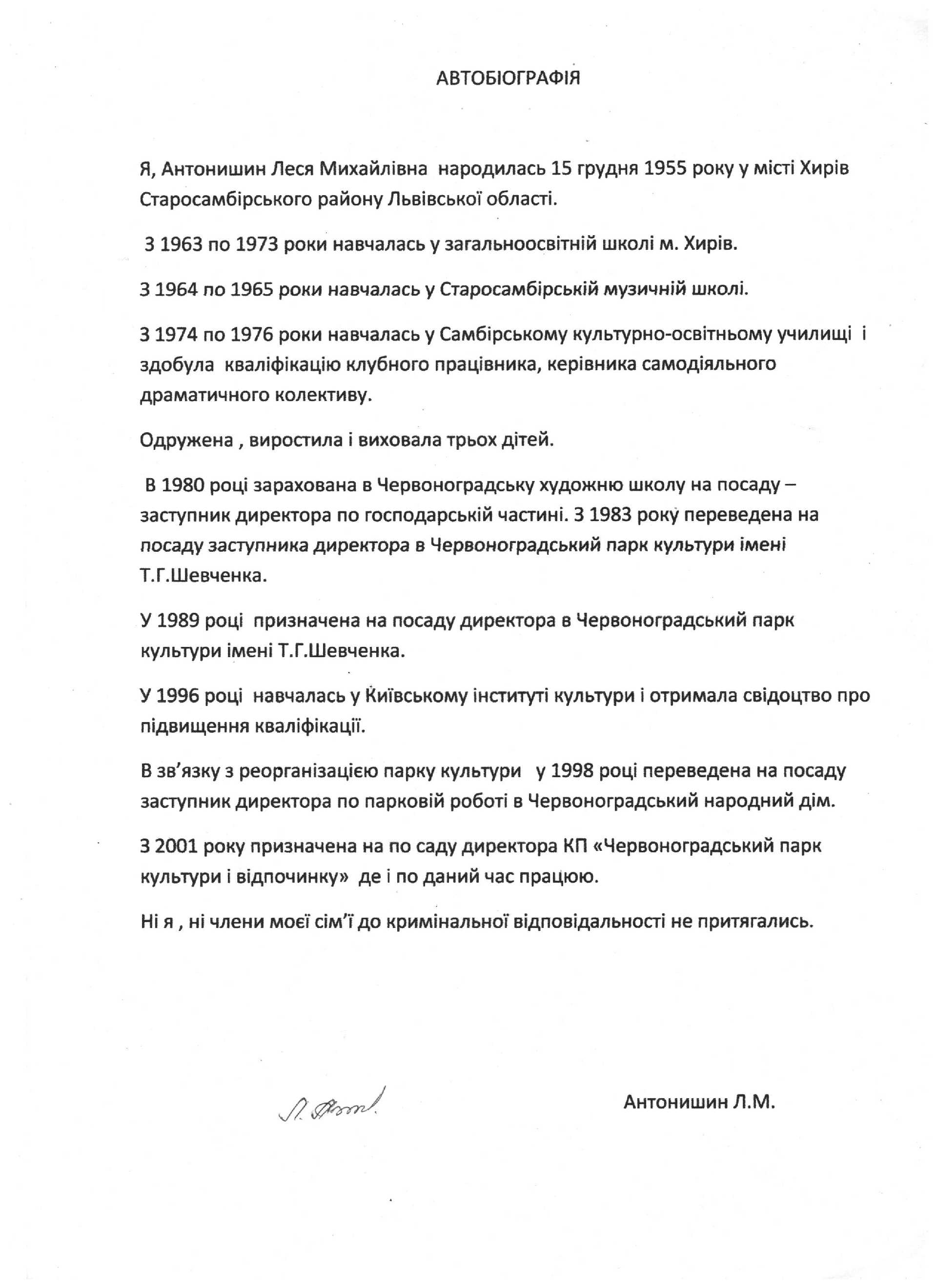АНТОНИШИН ЛЕСЯ МИХАЙЛІВНА