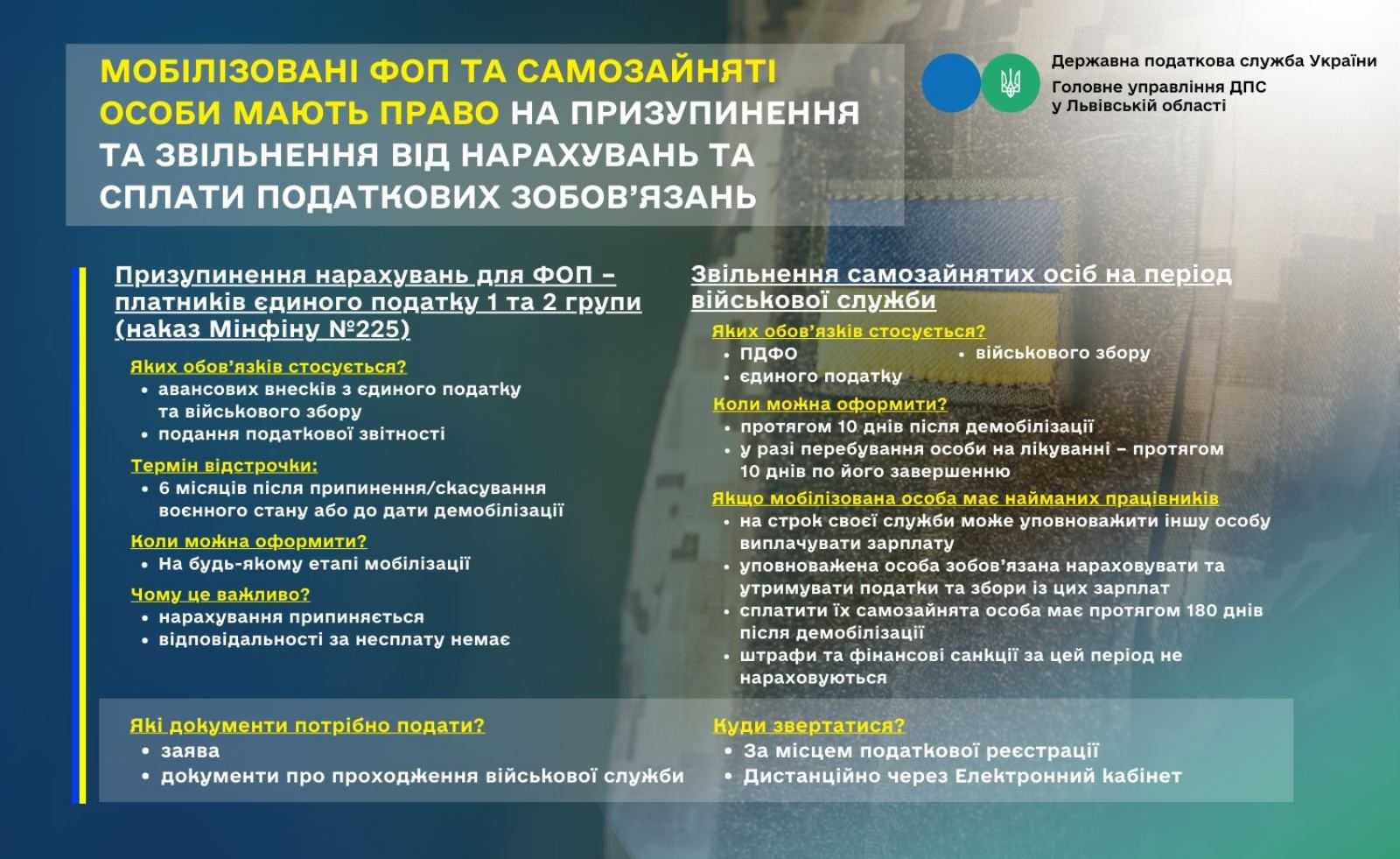 Призупинення та звільнення від обов’язку нарахування та сплати для мобілізованих ФОП