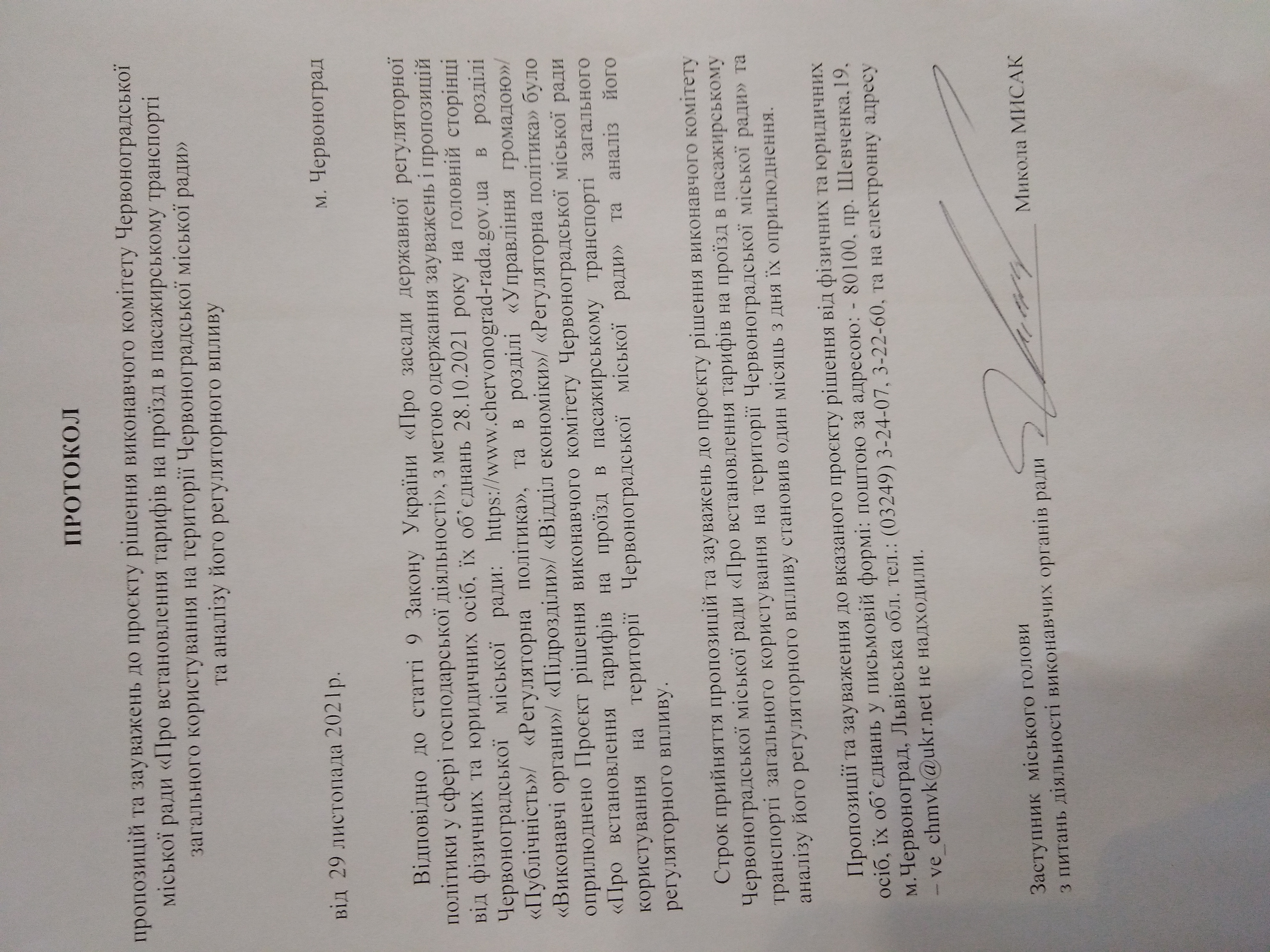 - Рішення виконавчого комітету Червоноградської міської ради від 19.10.2021р. №141 «Про встановлення тарифів на проїзд в пасажирському транспорті загального користування на території Червоноградської міської ради» вважати таким, що втратило чинність.