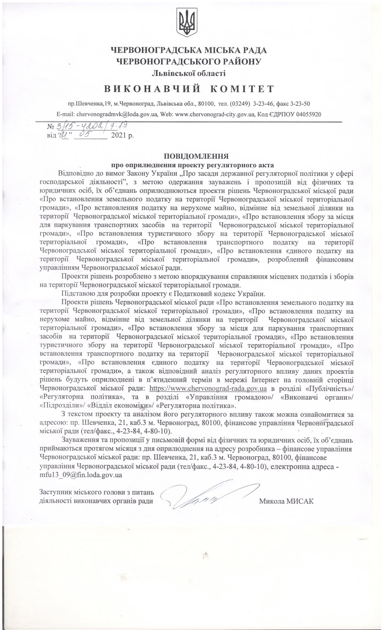 Повідомлення про оприлюднення проекту регуляторно акта.JPG
