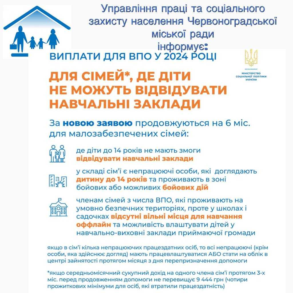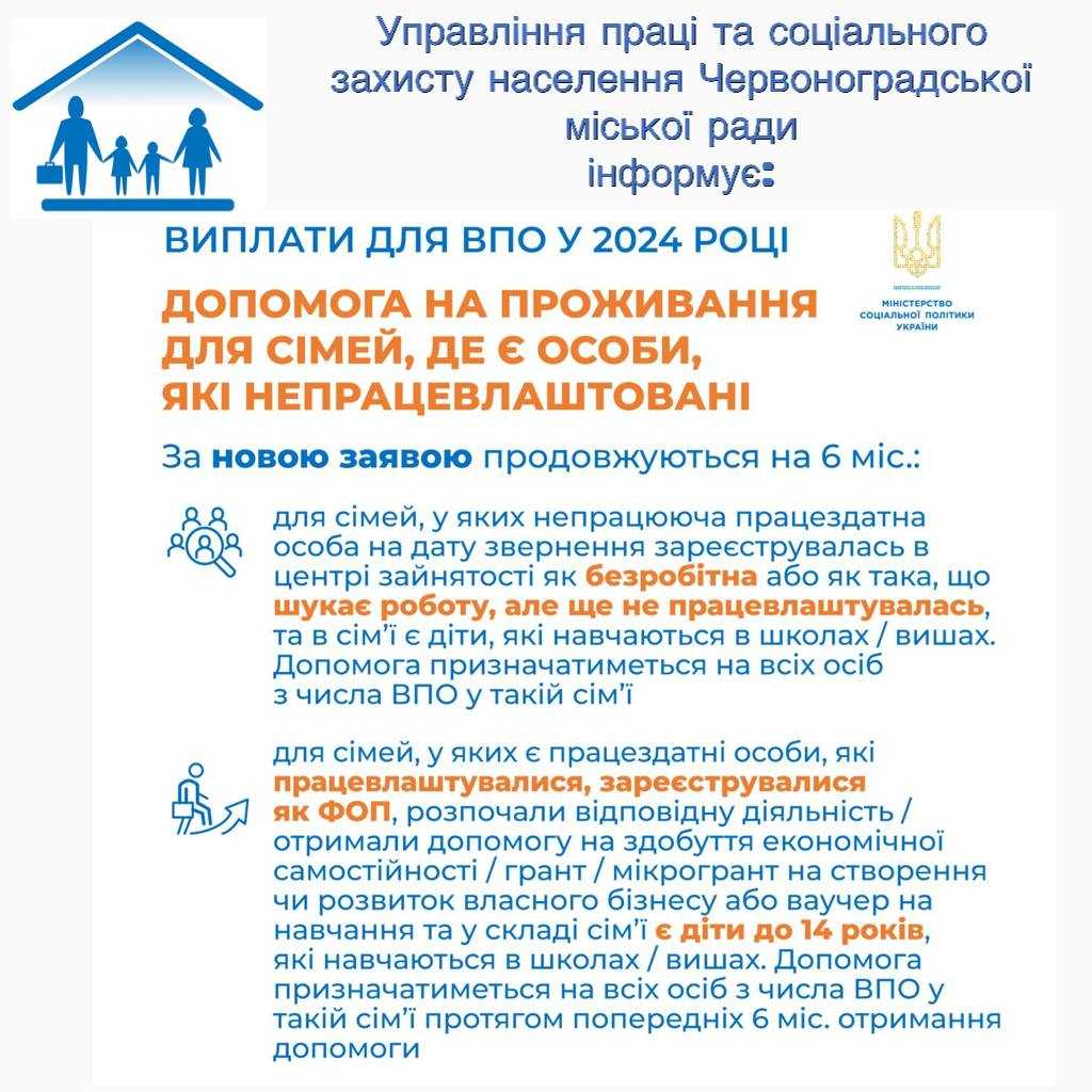 Продовження допомоги на проживання ВПО з 01.03.2024р.