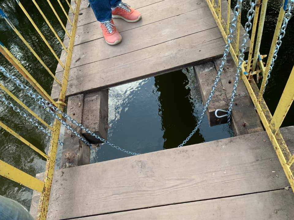 У неділю, 3 жовтня, орієнтовно о 17:00 на підвісному мості через Західний Буг, обвалилась одна поперечна опора під секцією дерев’яного настилу довжиною 2,5 метри, найімовірніше через значне навантаження від скупчення людей. Обірвало як основне, так і додаткове кріплення.