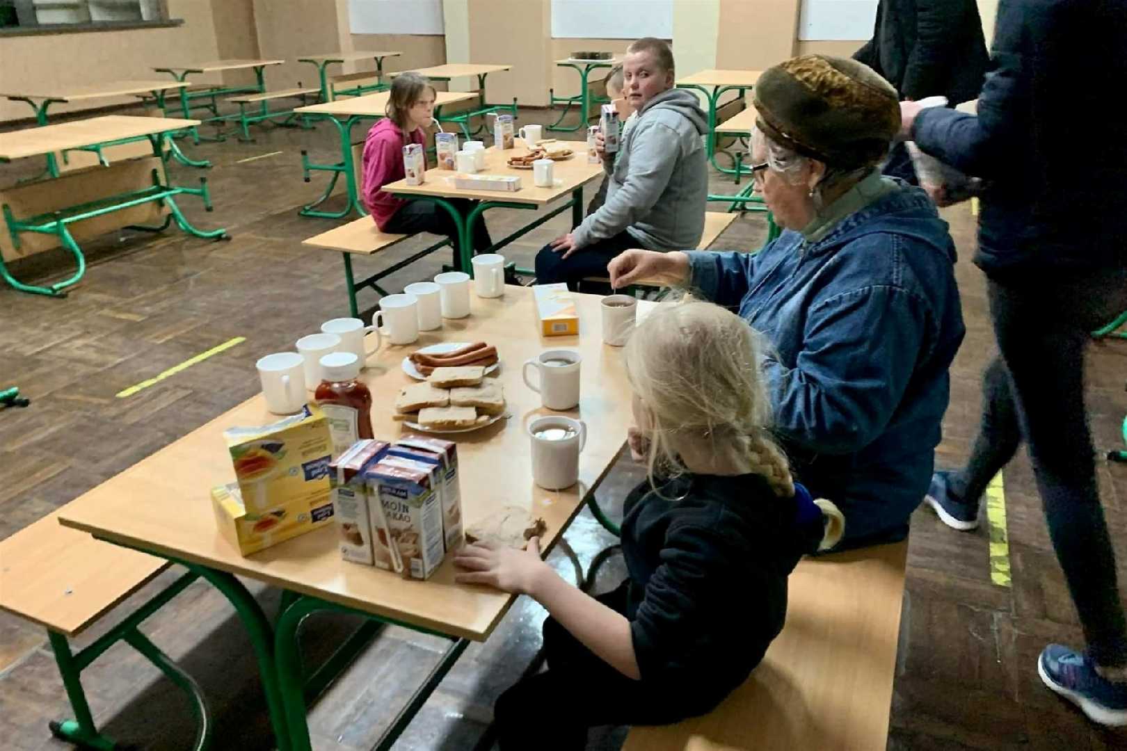 Для поселених людей у шкільній їдальні організували харчування. Продуктами в основному забезпечують волонтери, а коли чогось бракує, то купуємо за кошти, які зібрали працівники школи. Щодня з наявних продуктів наші кухарі готують різноманітну, смачну та поживну їжу. Щодо ночівлі, то спочатку прибулі спали на матрацах на підлозі, зараз поставили піддони, то трохи їм зручніше. Постіль теж забезпечили волонтери, мешканці міста і вчителі нашої школи.