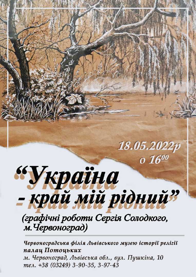 О 16:00 відбудеться презентація виставки графічних робіт «Україна – край мій Рідний» Сергія Солодкого.