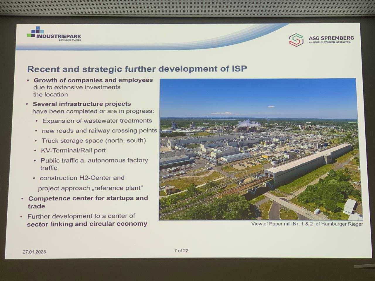 Мабуть, найбільше враження на учасників навчального туру справив індустріальний парк Шварце Пумпе, який розташований на території двох земель Бранденбург та Саксонія і займає площу 1100 гектарів. Зараз в промисловому парку працює 110 компаній, які забезпечують роботою 5200 осіб. У 2020 році тут збудували стартап-центр Dock 3, де компанії можуть орендувати площі та працювати над своїми ідеями, поки не вийдуть на промислові масштаби. Окрім того на території Шварце Пумпе прокладено понад 350 км залізниці, розміщено пункт управління колією, очисні споруди, склади та автоматизовані термінали, а ще своя пожежна частина, охоронна служба та пункт надання медичної допомоги.